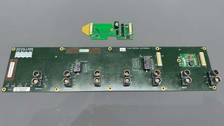 Reparamos placas de controle, comunicação, potência e Thruster, incluindo retrabalho de componentes SMD e substituição de conectores.